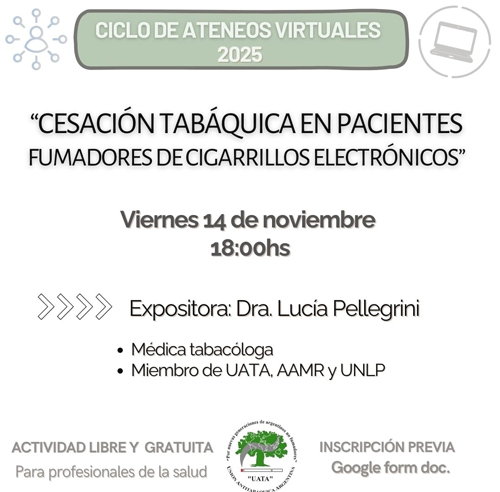Por lo tanto, desde la Unión Antitabáquica Argentina “UATA”, REPUDIAMOS LA PUBLICACIÓN DE INFORMACIÓN SINAVAL CIENTÍFICO Y QUE CONFUNDE A LOS PACIENTES EN PARTICULAR Y A LA POBLACIÓNEN GENERAL. Cabe destacar que el Tabaquismo es una enfermedad adictiva sostenida en una triple dependencia, química, psicológica y social.
